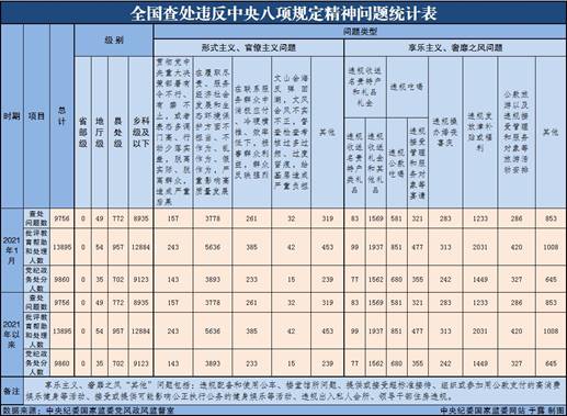 为掌握全国贯彻落实中央八项规定精神情况,中央纪委国家监委在各省区市和新疆生产建设兵团、各中央和国家机关、各中央企业和中央金融企业等建立了落实中央八项规定精神情况月报制度。2021年以来,截至1月31日,全国查处违反中央八项规定精神问题情况如下: